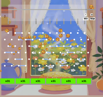 Click and place the bet biscuit at the top-right into the drop zone and watch as it bounces down into a winning slot. Adjust your bet amount with the + and – buttons. Buy upgrades to increase your chances of winning biscuits.